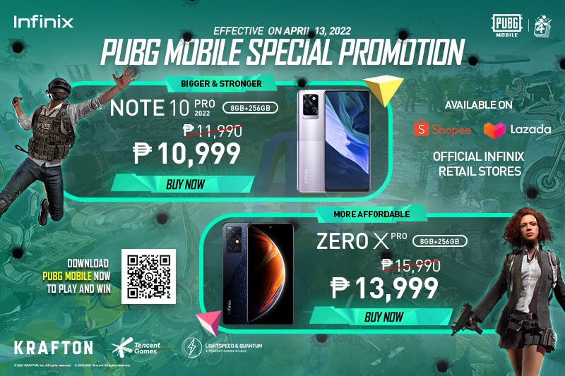 To celebrate the recent launch of its partnership with fan-favorite battle-royale game PUBG Mobile, Infinix Philippines announced that its two most powerful flagships – the ZERO X PRO (8+256GB) and NOTE 10 PRO (8+256GB) – will now be available at the following more affordable prices: