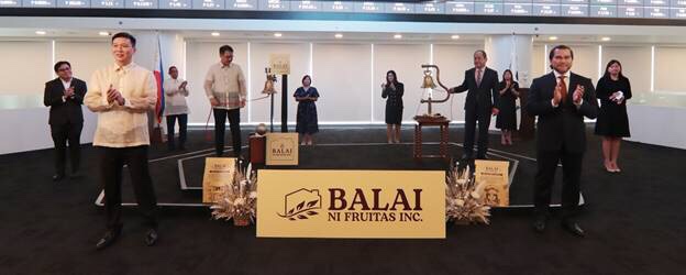 Balai Ni Fruitas Inc. (trading symbol: BALAI) celebrated its stock market debut as the latest addition to The Philippine Stock Exchange, Inc.’s (PSE) Small, Medium and Emerging (SME) Board through a bell ringing ceremony held on Thursday, June 30. BALAI listed 1.49 billion primary and secondary shares.
