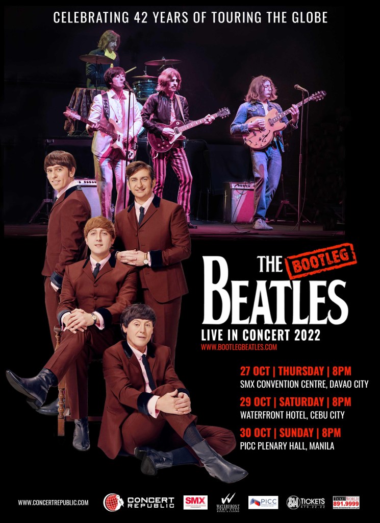 The Bootleg Beatles have previously performed sold out tours in the Philippines during their 2016 & 2018 tourshere. Moreover, they are fresh from performing at this year’s Glastonbury Festival. So, to all Pinoy Beatlesloyalists out there, you better prepare to witness their remarkable concert production behold for a one-of-a-kind live music experience like no other this 2022 featuring the finest repertoire of the world’s most popular band ever.