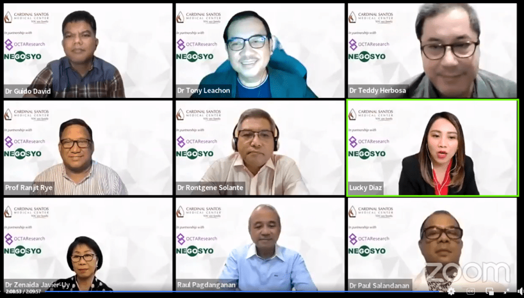 Present as speakers were OCTA Research fellows Prof. Ranjit Singh Rye and Dr. Guido David, GO Negosyo Founder Mr. Jose Maria “Joey” Concepcion, National Task Force Against COVID-19 Special Adviser Dr. Teodoro “Teddy” Herbosa, Health Reform Advocate Dr. Anthony “Tony” Leachon, and Infectious Disease Specialist Dr. Rontgene Solante. CSMC’s very own Dr. Paul Salandanan joined in as a reactor, and the event was facilitated by CSMC’s Vice President and Head of Human Resources, Ms. Lucky Diaz-Tiozon.