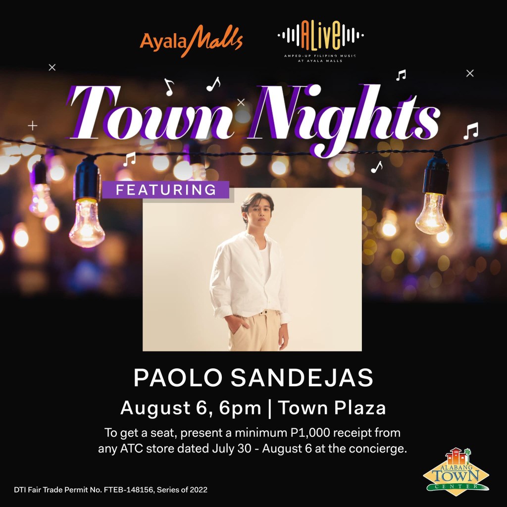Alabang Town Center’s Town Nights has been consistently committed in giving OPM artists a very good spotlight to perform and showcase their own brand of music with much pride to a greater audience. And since this is Paolo’s first-ever solo mall show, he’s more than excited to connect with all of his listeners through his original songs live on stage!