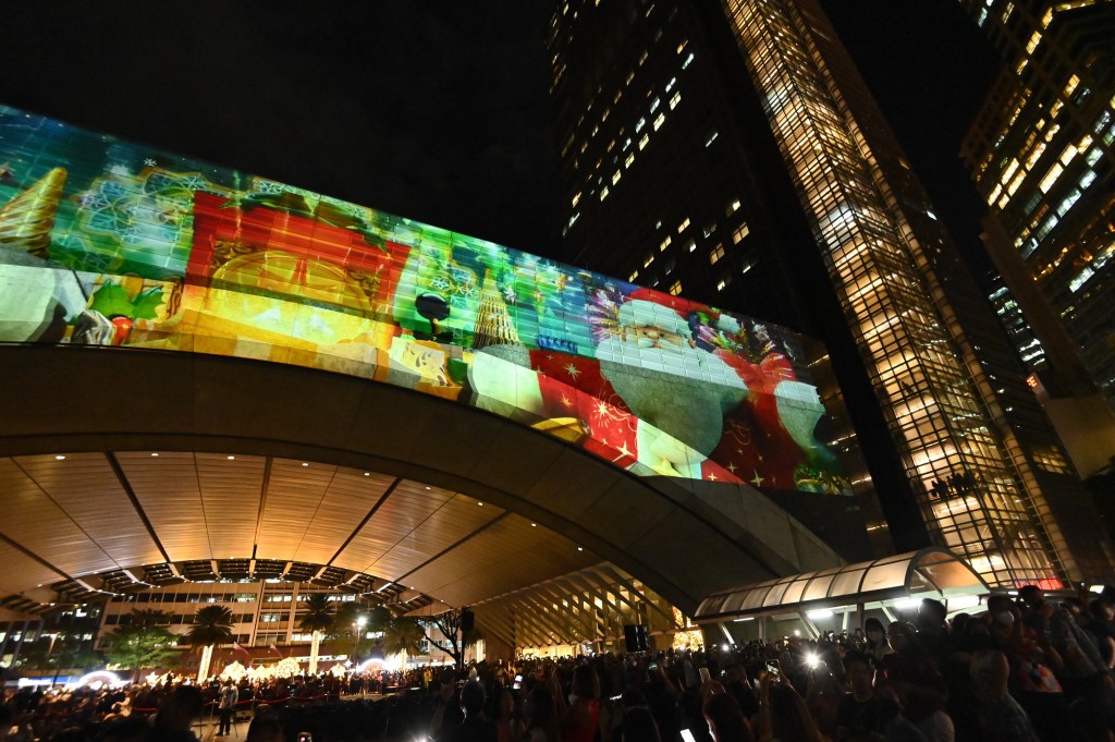 In partnership with Kroma and Acid House, Ayala Land begins the affair with a fun and quirky introduction to the actual Light Show. Aimed to build a celebratory vibe by creating excitement in light the two-year pause, the intro video—following the idea of “The Christmas Lights Factory”—suggests that Santa and the elves are working hard to bring the Light Show back. Projected on the canopy façade, everyone gathered at Ayala Triangle Gardens will catch the elves as they prepare the Christmas lights machine to work. As soon as it does, the machine produces lights of various shapes, colors, and sizes. The elves, then, pick these up and transport each element from the screen to the trees surrounding ATG. It ends with Santa with a powerful switch that turns everything on, ready for the Light Show.