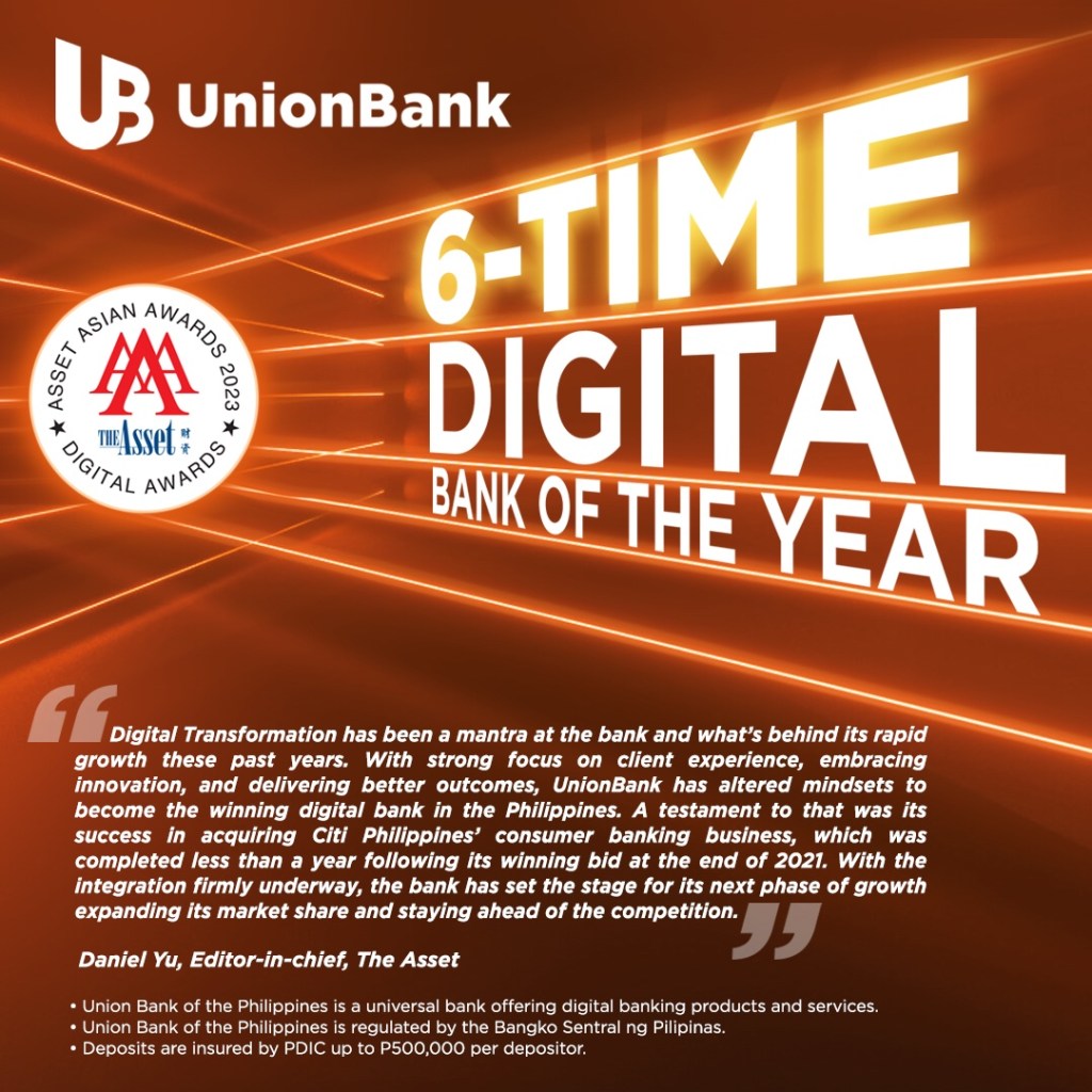 Since winning its first “Digital Bank of the Year” award from The Asset in 2017, UnionBank has consistently been streets ahead of the competition in introducing innovative solutions that continue to redefine the future of banking today.