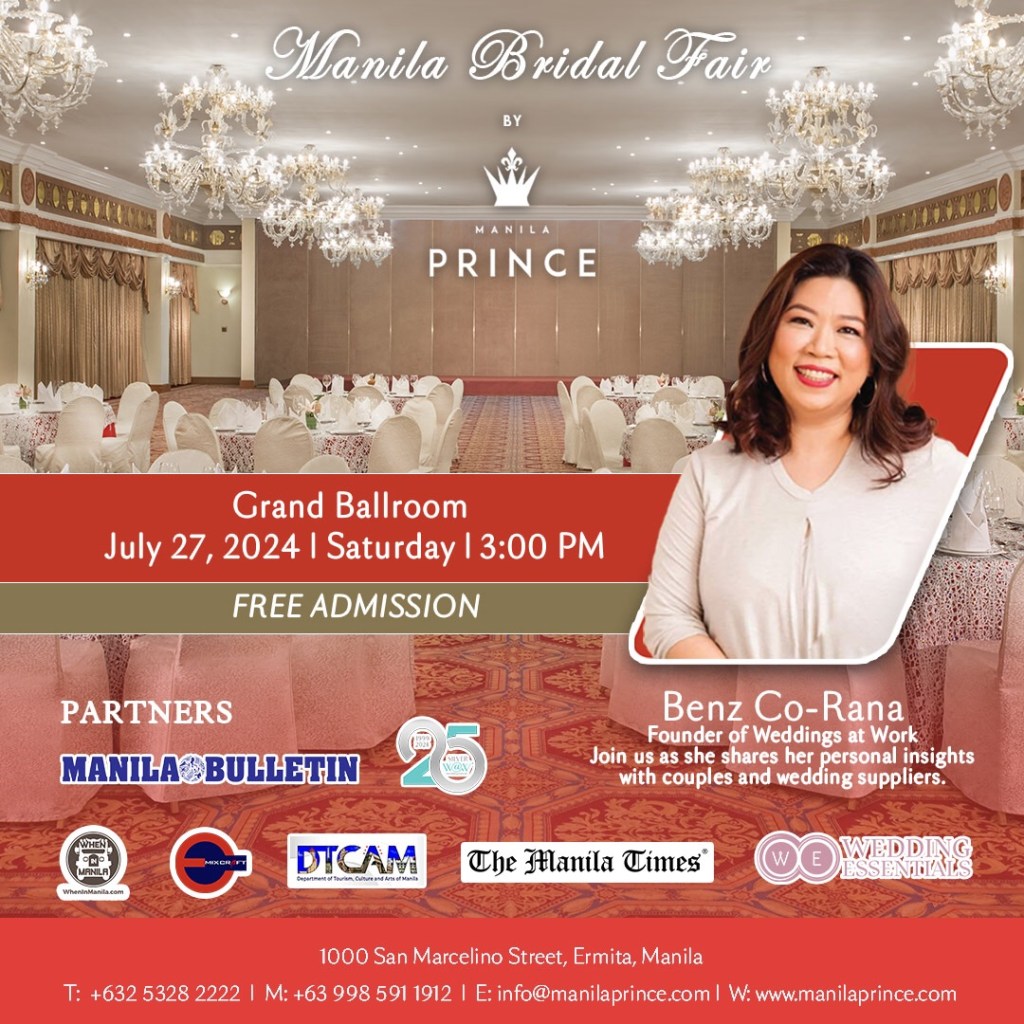 The much-anticipated Manila Bridal Fair by Manila Prince Hotel is set to grace the Grand Ballroom on July 26 and 27, 2024. This prestigious event aims to bring together a curated selection of industry experts, offering soon-to-wed couples an unparalleled experience. Admission is free on both dates.