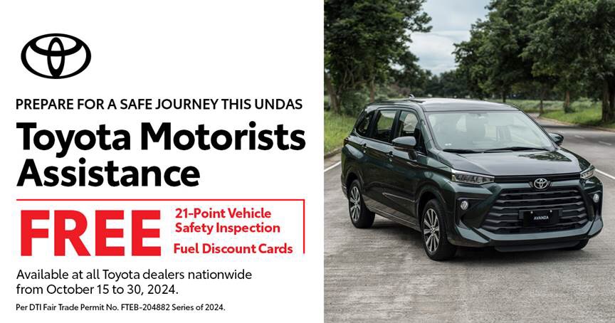 For more information, customers may visit https://www.toyota.com.ph/promos/toyota-motorist-assistance-campaign-pre-undas-inspection-2024