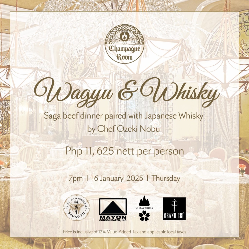Scheduled for January 16, 2025 at the iconic Champagne Room, this elegant evening promises a harmonious blend of flavors, combining the unparalleled quality of Saga Wagyu with the nuanced profiles of premium Japanese whisky.