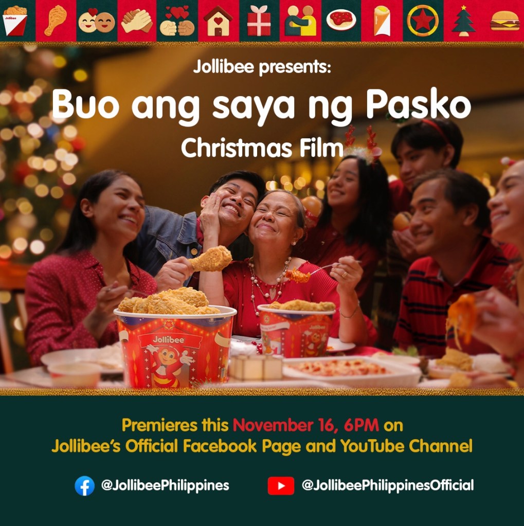 “Buo ang Saya ng Pasko” premieres on Jollibee’s Facebook and YouTube pages. Don’t miss it!