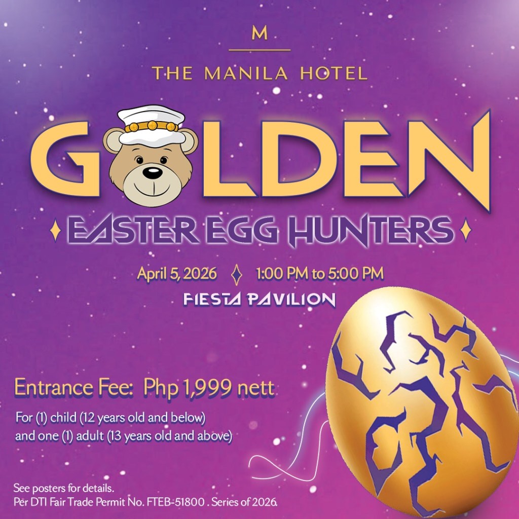 On April 5, 2026, The Manila Hotel will host the Golden Easter Egg Hunters at Fiesta Pavilion from 1:00 pm to 5:00 pm. The event promises an exciting afternoon for children and families, highlighted by a lively Easter egg hunt. The celebration also features musical performances, magic show, arts and crafts, face painting, inflatable play areas, balloon twisting, games, and more. Designed as a vibrant family gathering, the event offers children a fun and safe way to celebrate Easter.