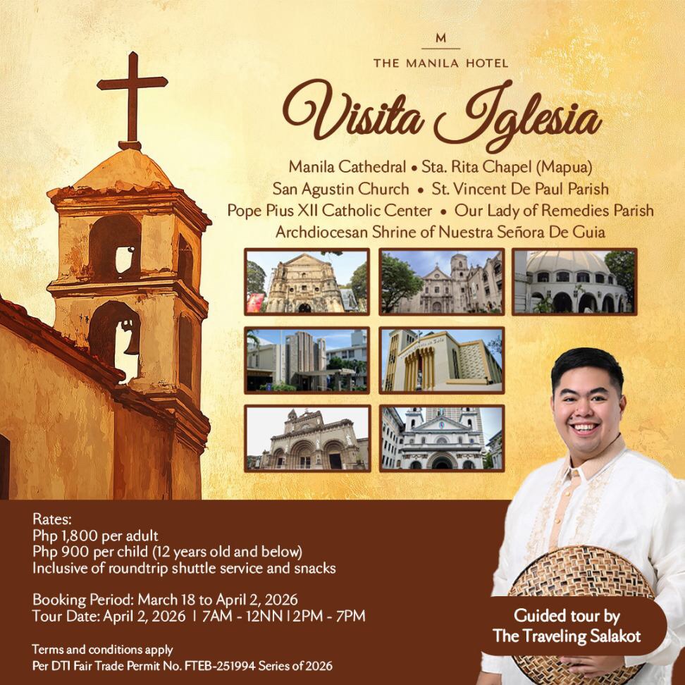 In the spirit of Lenten reflection, The Manila Hotel invites guests to join a meaningful Visita Iglesia on Maundy Thursday, April 2, 2026. Following the success of last year’s tour, the hotel once again partners with John Paul Hernandez, also known as The Traveling Salakot, a social science educator known for his engaging heritage walks that highlight Filipino history and culture. The tour includes visits to Manila Cathedral, Santa Rita Chapel, San Agustin Church, Saint Vincent de Paul Parish Church, Pope Pius XII, Our Lady of Remedies Church, and Archdiocesan Shrine of Nuestra Senora de Guia.